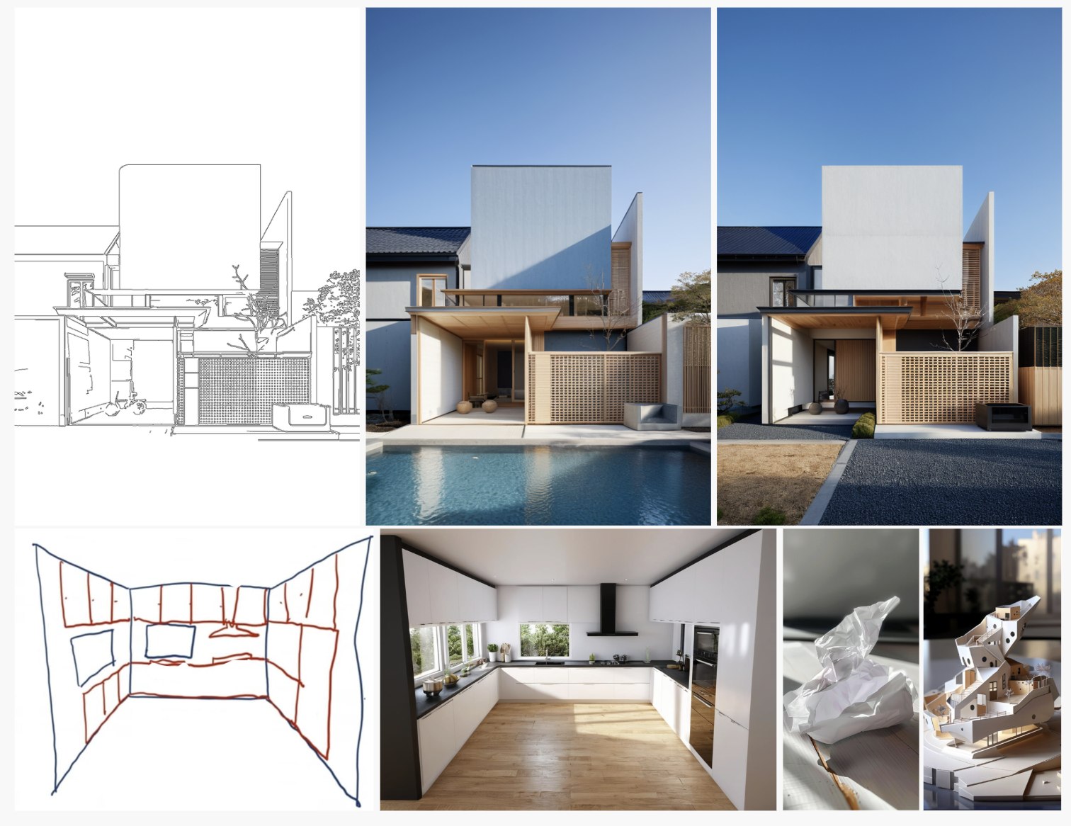- มีเครื่องมือถูกสร้างมาเพื่อให้สามารถใช้งานได้หลากหลาย เช่น ความคุมการสร้างภาพด้วย Controlnet ทำให้สามารถใช้กับงานออกแบบสถาปัตยกรรม และ งานออกแบบภายในได้อย่างดี