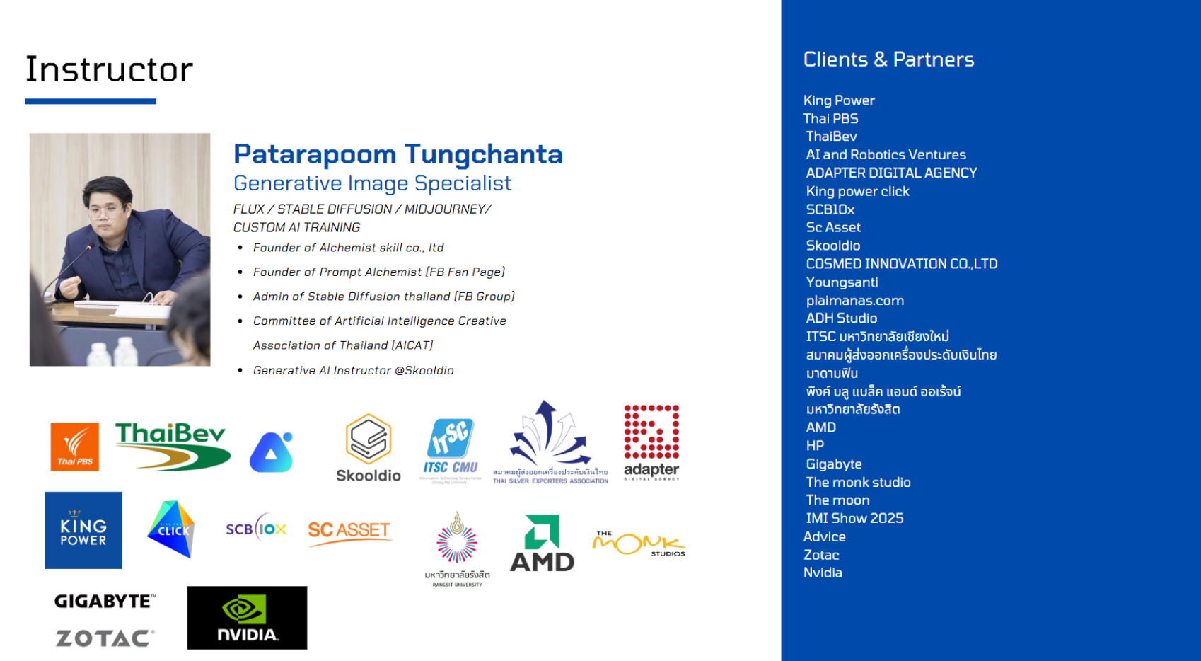 หลักสูตรนี้จึงถูกออกแบบมา เพื่อนำจุดเด่นของ Generative Ai มาช่วยให้การทำงานของนักออกแบบง่ายขึ้น และเห็นภาพตรงกันทั้งฝ่ายนักออกแบบและลูกค้า